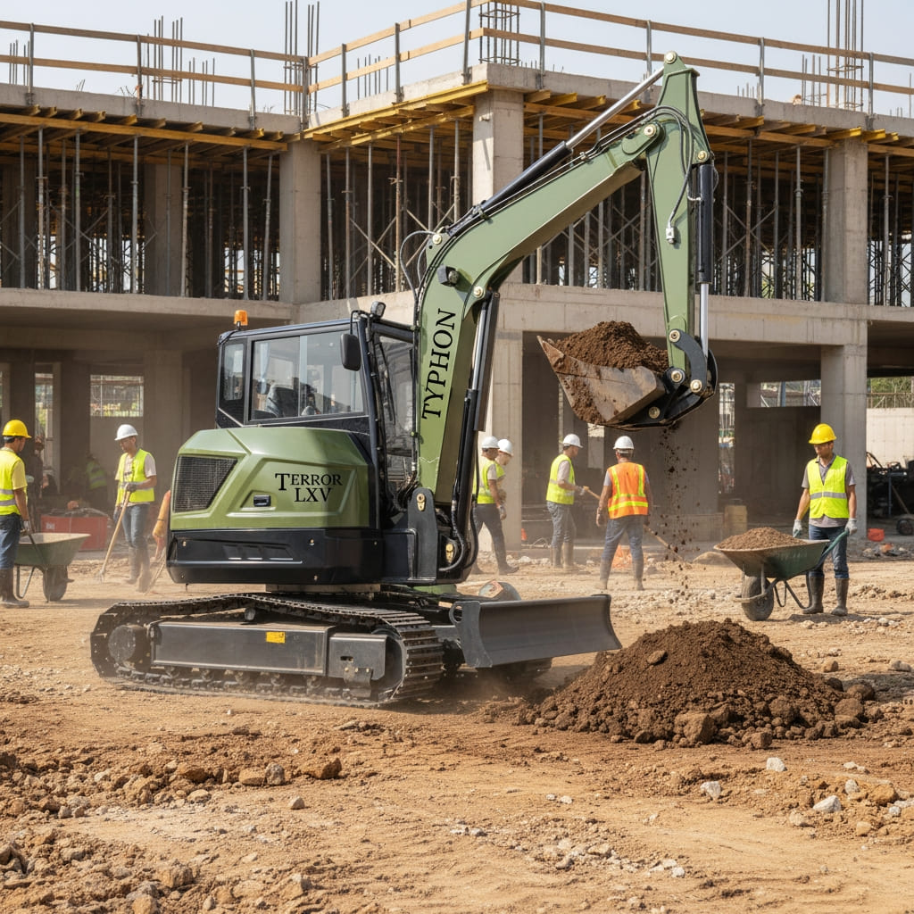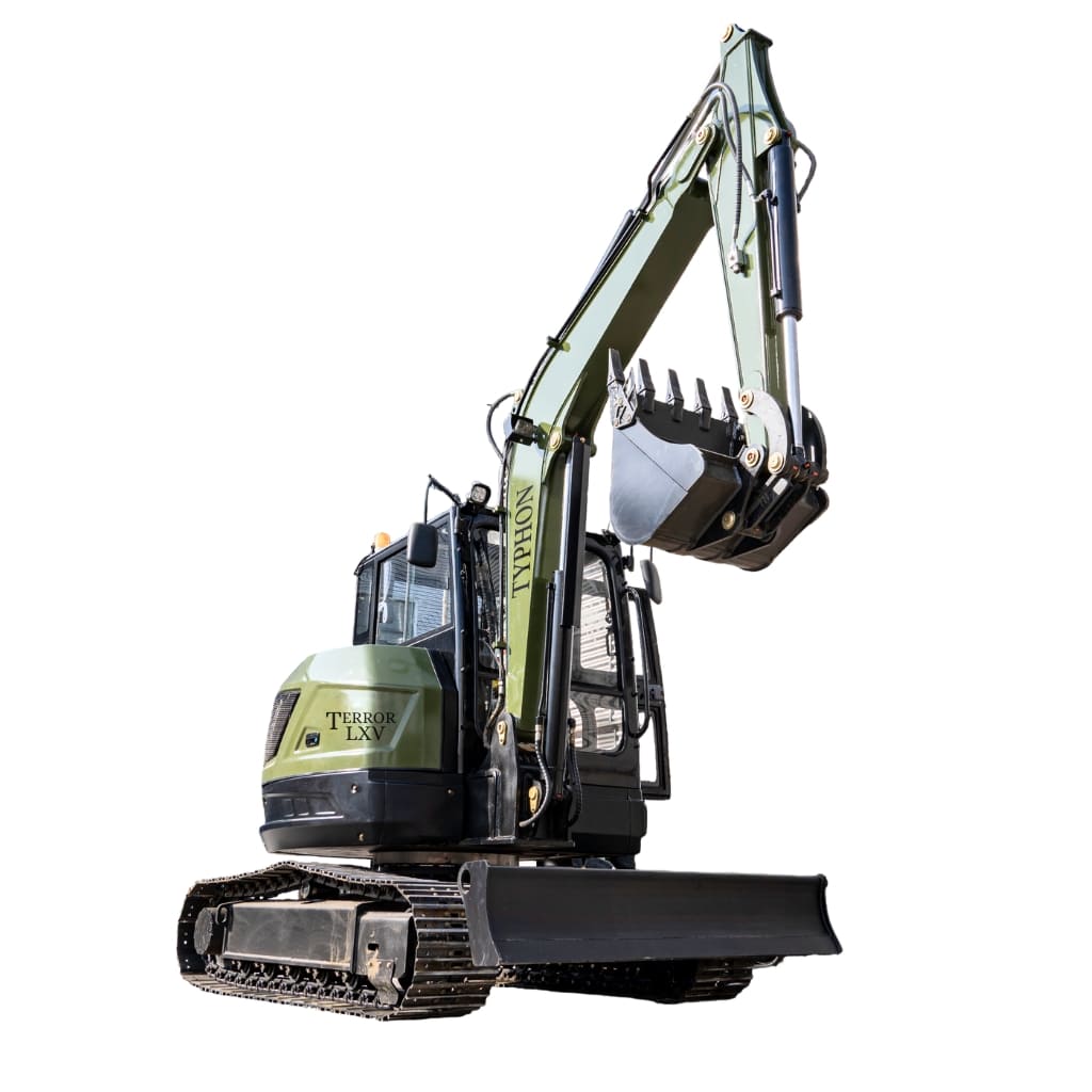 TYPHON TERROR LXV 6.6-Ton Mini Excavator is built for high-performance construction, agriculture, land development, foundation work, and heavy material-handling tasks. Powered by the dependable Kubota V2607 diesel engine (56.9 HP / 42.5 kW), it delivers strong digging force, smooth hydraulic response, and consistent operation in demanding environments.